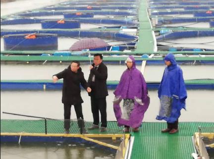 考察組一行冒著霏霏細雨,在水產(chǎn)公司負責人的陪同下,參觀了養(yǎng)殖基地現(xiàn)場,著重對該公司擁有具備自主知識產(chǎn)權的漂浮型環(huán)形跑道槽養(yǎng)殖系統(tǒng)進行詳致考察,并就基地養(yǎng)殖模式、環(huán)保處理、養(yǎng)殖效益、行業(yè)前景等進行了多方面的交流,受益頗豐。