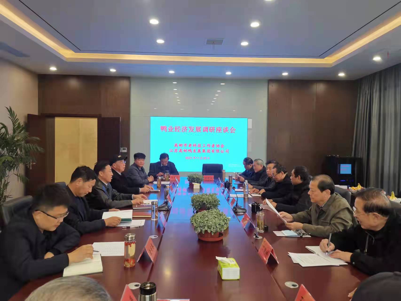 11月20日下午,高郵市老科協(xié)部分專家領(lǐng)導(dǎo)調(diào)研指導(dǎo)鴨集團(tuán)工作,并召開鴨業(yè)經(jīng)濟(jì)發(fā)展調(diào)研座談會,市水投集團(tuán)副總經(jīng)理、鴨集團(tuán)董事長劉廣游陪同調(diào)研。