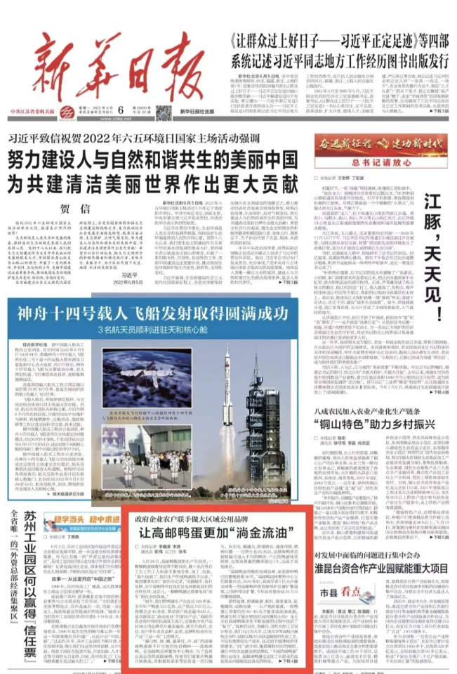 省級(jí)主流媒體新華日?qǐng)?bào)頭版聚焦高郵鴨蛋