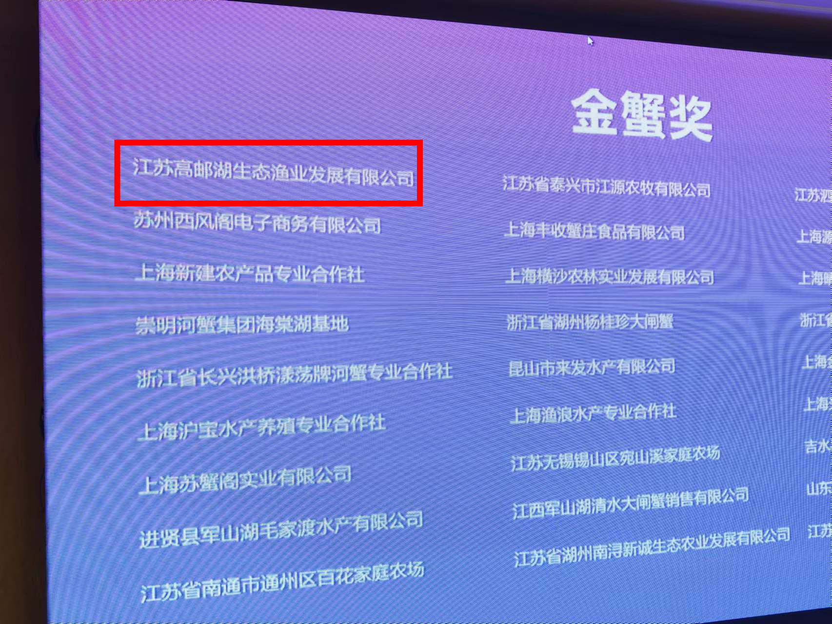 萬頃湖牌大閘蟹榮獲2022年全國河蟹大賽“金蟹獎(jiǎng)”