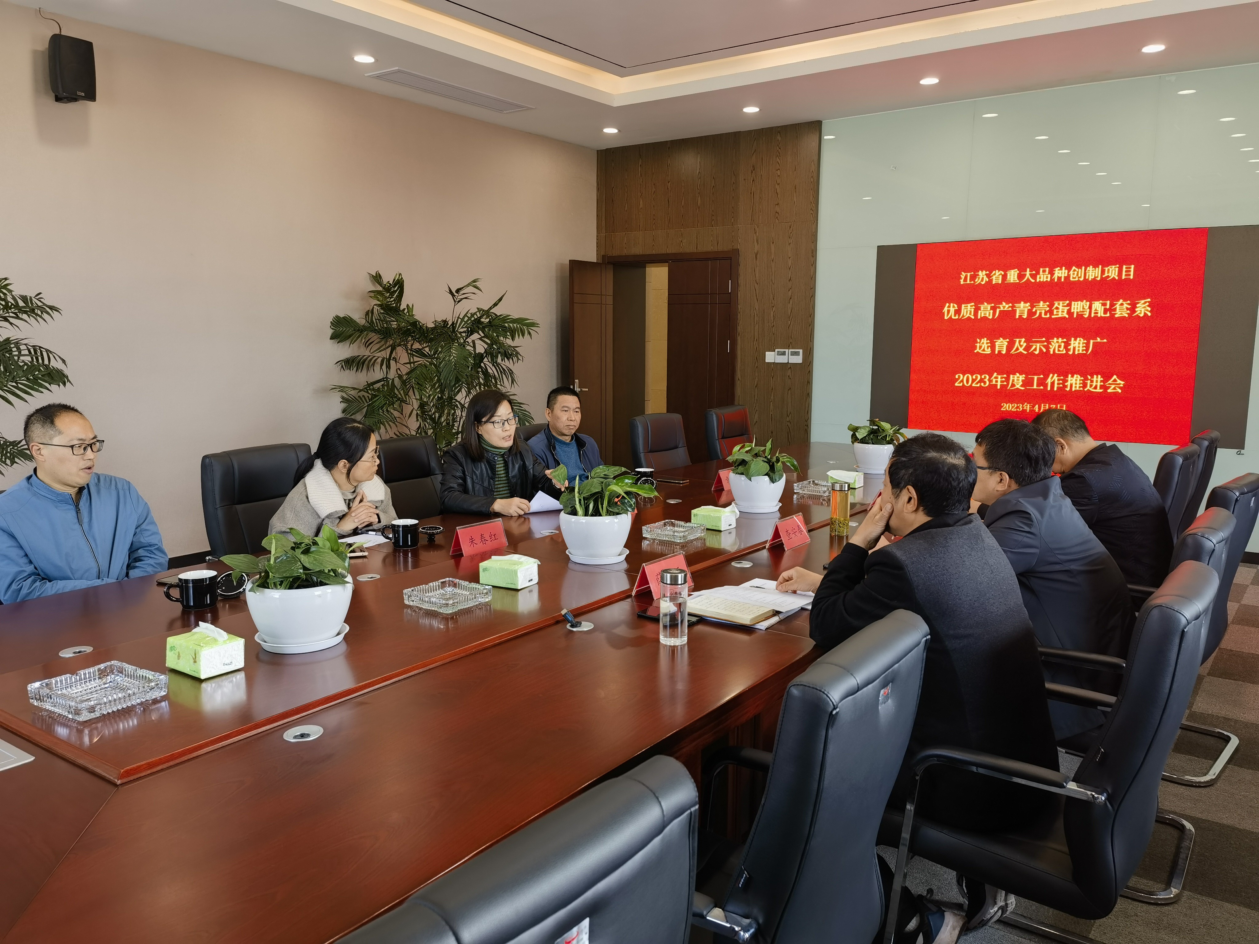 4月7日上午,家禽所副所長李慧芳、主任朱春紅、研究員章雙杰一行來良繁中心就省重大品種創(chuàng)制項(xiàng)目的實(shí)施進(jìn)展情況與下一步的工作部署召開會(huì)議。會(huì)議由鴨集團(tuán)副總經(jīng)理查安春主持。