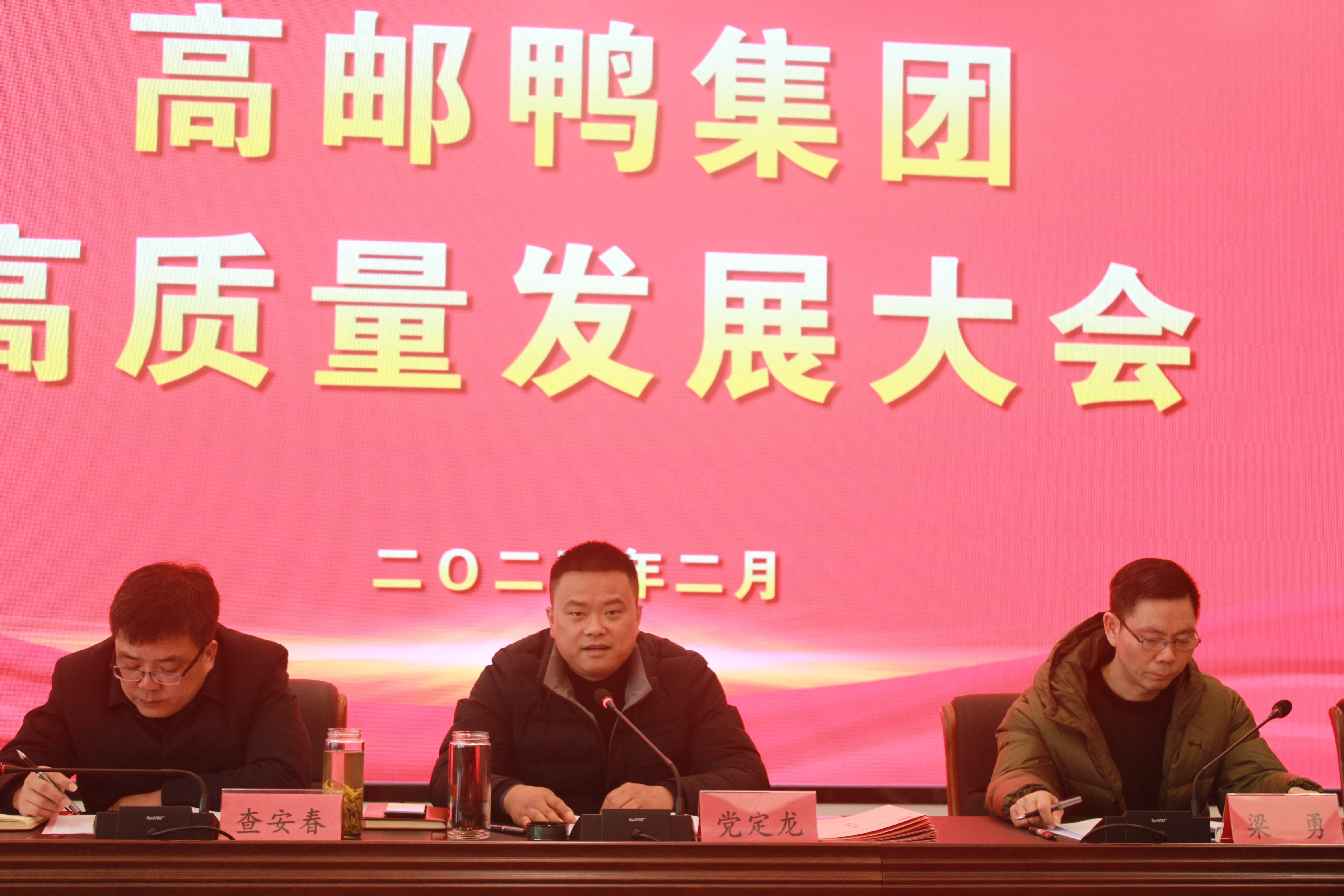 一年春作首,萬事干為先。2月24日上午,高郵鴨集團(tuán)召開高質(zhì)量發(fā)展大會,總結(jié)回顧2023年工作,全面吹響2024年經(jīng)營發(fā)展的沖鋒號,激勵干部職工以“起跑即沖刺”的奮進(jìn)姿態(tài),在國企改革、實體運作、市場競爭的新賽道上爭當(dāng)“新賽手”,跑贏“新賽程”。水投集團(tuán)副總經(jīng)理、鴨集團(tuán)董事長黨定龍出席會議,鴨集團(tuán)全體班子成員、總部人員、下屬企業(yè)管理人員、獲獎人員及職工代表參加會議,會議由梁勇總經(jīng)理主持。