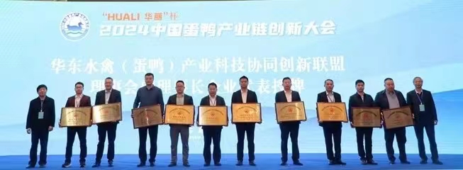 大會(huì)期間,組委會(huì)組織召開(kāi)“華東水禽(蛋鴨)產(chǎn)業(yè)科技協(xié)同創(chuàng)新聯(lián)盟理事會(huì)成立大會(huì)”,黨定龍董事長(zhǎng)代表江蘇高郵鴨集團(tuán)接受理事會(huì)副理事長(zhǎng)單位授牌。