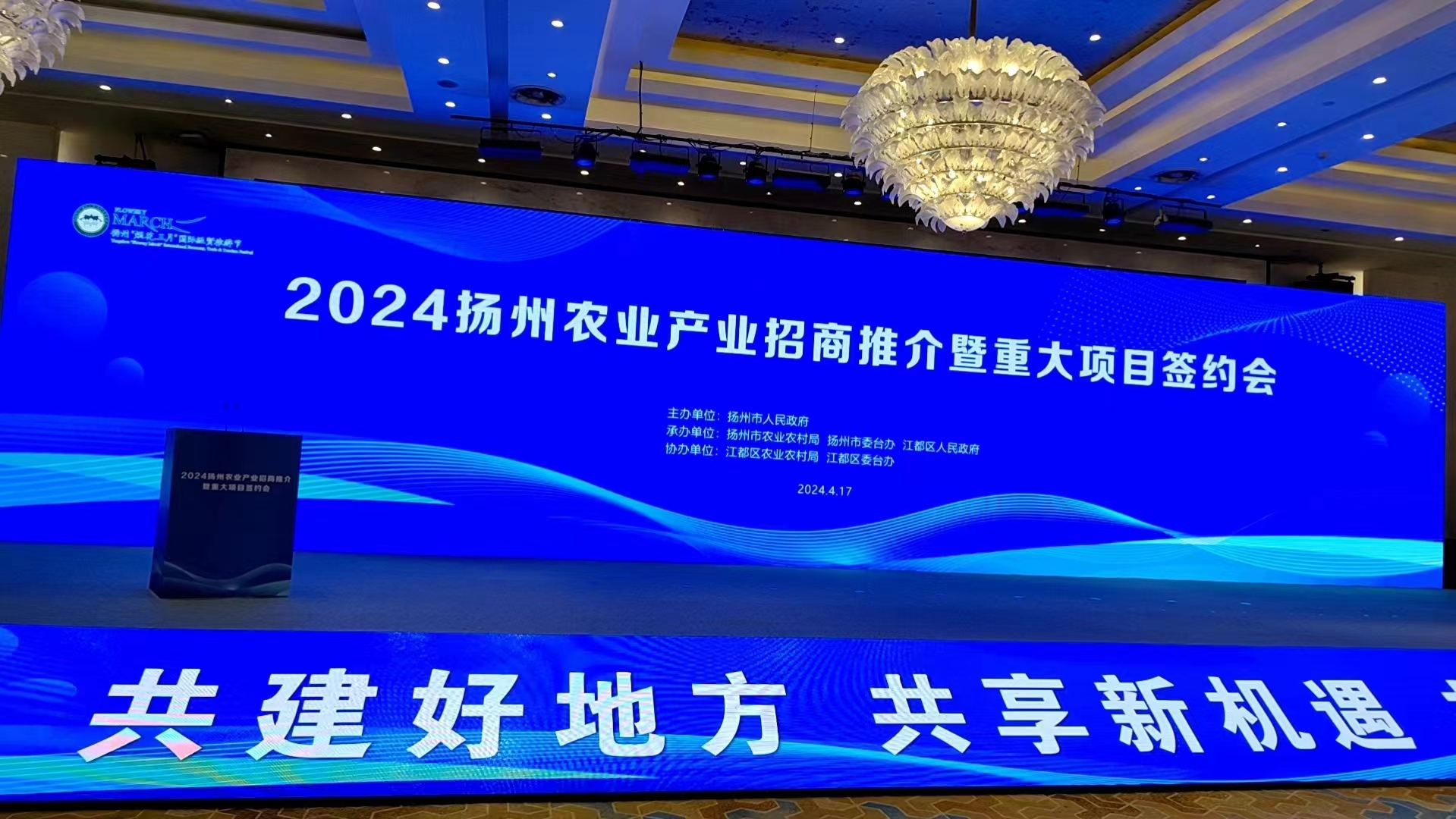 4月17日,“2024揚(yáng)州農(nóng)業(yè)產(chǎn)業(yè)招商推介暨重大項目簽約會”在揚(yáng)州舉行,高郵鴨集團(tuán)受邀參加此次大會,本次大會以“共建好地方,共享新機(jī)遇”為主題,旨在促進(jìn)農(nóng)業(yè)產(chǎn)業(yè)的交流與合作,為地方經(jīng)濟(jì)發(fā)展注入新活力。
