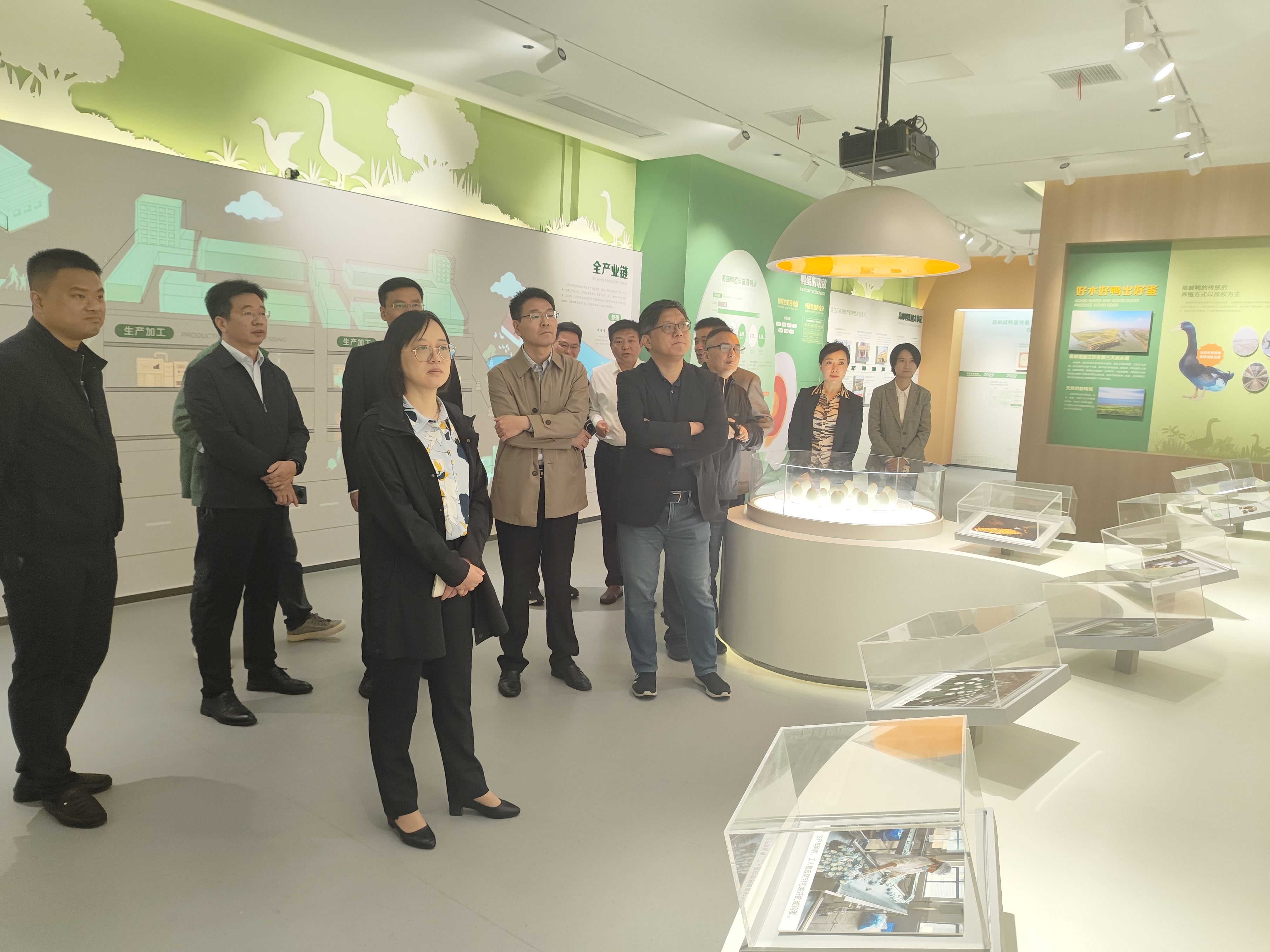 調(diào)研過程中,考察組一行先后參觀高郵鴨集團文化展廳及全產(chǎn)業(yè)鏈數(shù)字化平臺,了解高郵鴨保種養(yǎng)殖、產(chǎn)品加工和質(zhì)量控制等情況,并從高郵鴨蛋的前世今生、高郵鴨集團大事記、好水好鴨出好蛋、產(chǎn)業(yè)鏈打造、食品加工銷售等方面詳細聽取高郵鴨集團在展示高郵鴨形象、宣傳高郵鴨文化、打造高郵鴨品牌方面開展的工作。考察組表示,將利用此次考察契機,結(jié)合雙方優(yōu)勢,進一步拓展合作契機,實現(xiàn)互利共贏。