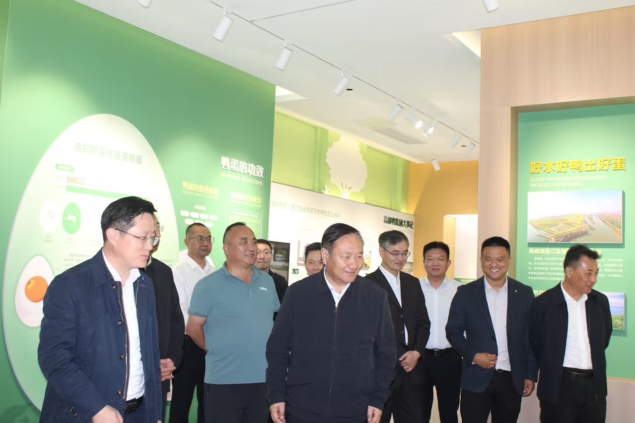 考察組一行先后走進高郵鴨集團企業(yè)文化展廳、數(shù)字化平臺,詳細了解高郵鴨蛋的歷史淵源、鴨集團大事記、好水好鴨出好蛋、產(chǎn)品加工、品牌宣傳和數(shù)字化平臺等相關(guān)情況。