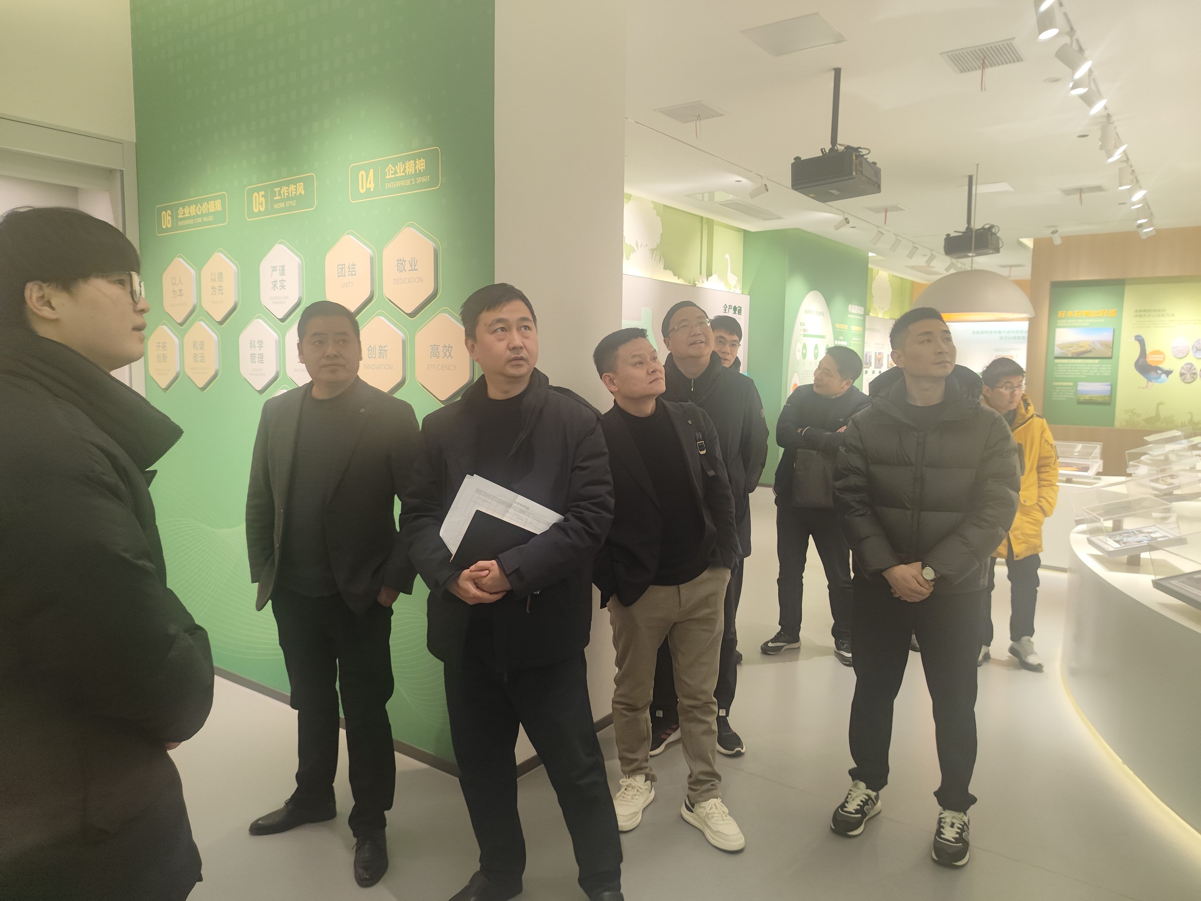 考察團隊一行走進高郵鴨集團企業(yè)文化展廳,詳細了解了高郵鴨集團大事記、高郵鴨的品種優(yōu)勢、蛋品的加工及銷售、全產(chǎn)業(yè)鏈打造情況。