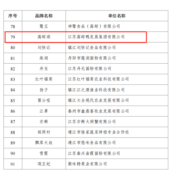 近日,江蘇省農(nóng)業(yè)農(nóng)村廳公布了2025年江蘇農(nóng)業(yè)品牌目錄,高郵鴨集團(tuán)旗下“高郵湖”品牌成功入選。江蘇農(nóng)業(yè)品牌目錄旨在發(fā)揮品牌引領(lǐng)作用,完善品牌建設(shè)管理機(jī)制,打造知名度高、影響力大、競(jìng)爭(zhēng)力強(qiáng)的江蘇農(nóng)業(yè)品牌。