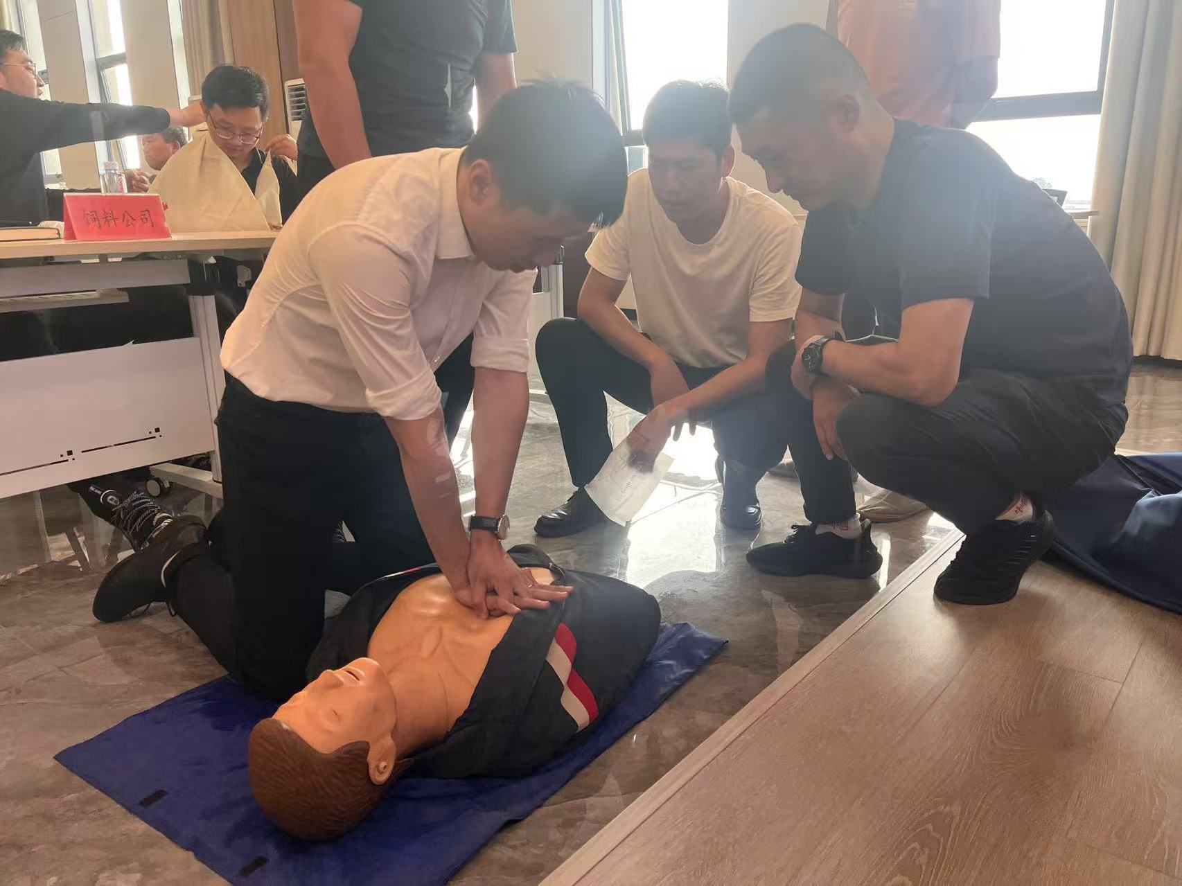 培訓采取"理論講解+實操演練"的方式,市安全培訓學校劉鋆雨老師采用圖文結(jié)合的方式,深入淺出地講解了心肺復蘇、創(chuàng)傷包扎、氣道異物梗阻急救等實用技能,參訓人員分組進行實操練習,在專業(yè)指導下掌握正確的急救手法。