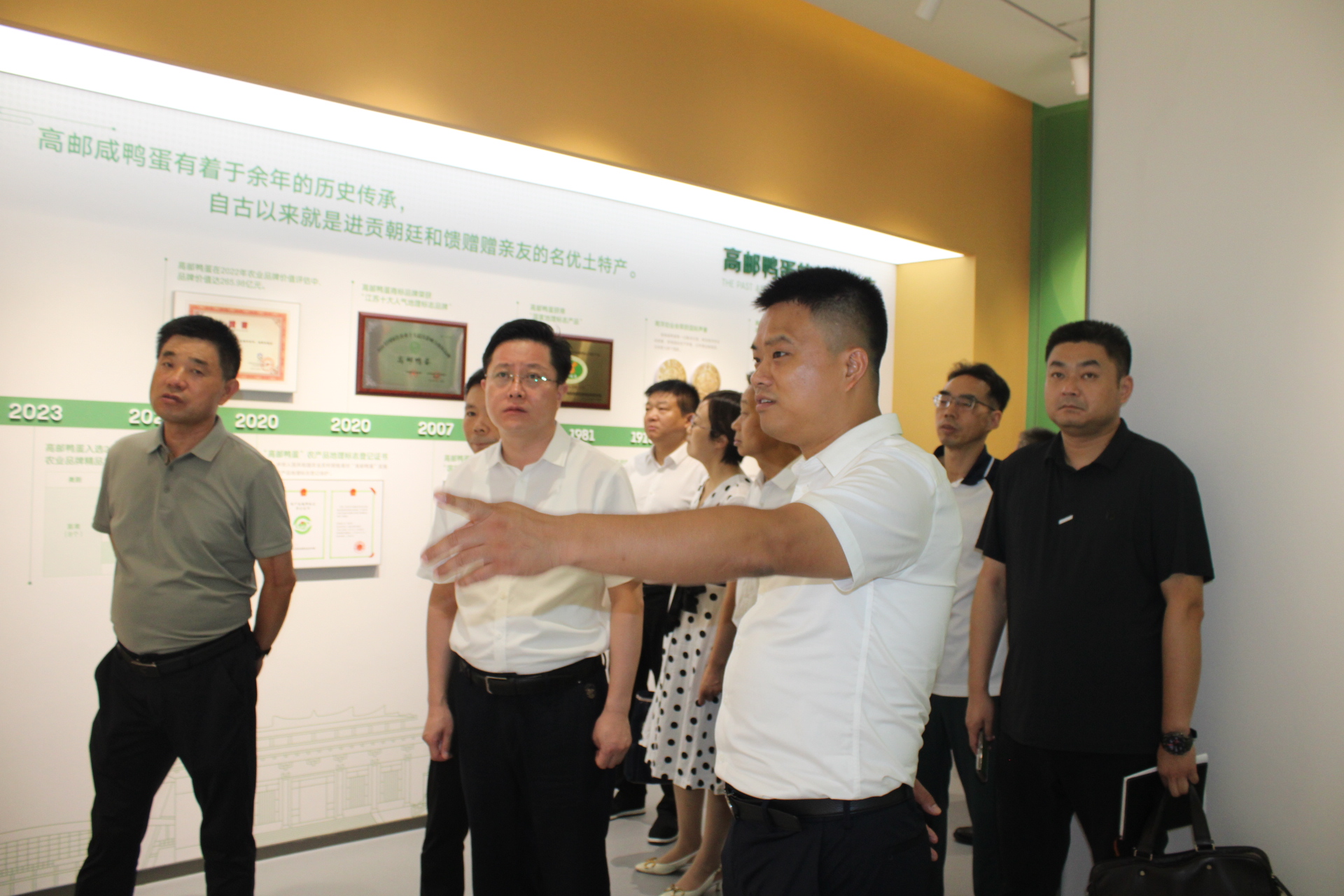 調(diào)研過程中,鄭志明副書記一行走進高郵鴨集團企業(yè)文化展廳、食品加工車間及電商直播間,聽取企業(yè)文化介紹,詳細(xì)了解生產(chǎn)加工以及線上銷售情況。